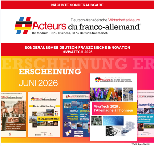 Acteurs du franco-allemand publie un numéro spécial sur le thème de « l’innovation franco-allemande », qui met en lumière les secteurs d’innovation des deux pays, leurs points communs et leurs atouts. Un reportage exclusif présente les 30 personnalités qui, en 2030, marqueront de leur empreinte l’innovation franco-allemande dans les domaines d’avenir (IA, cybersécurité, défense, physique quantique, etc.). Avec de nombreuses interviews de dirigeants politiques et économiques des deux pays.